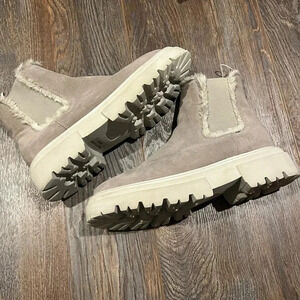 Steven New York Arian Chelsea Boot Like New size 6.5 Grey Lug soles faux fur