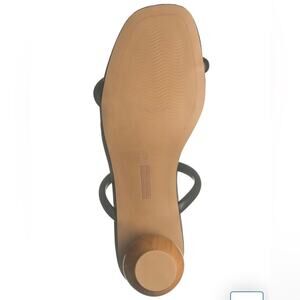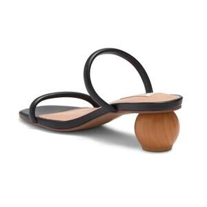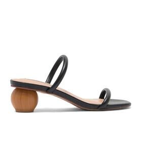 🍇 Steven New York Bala Minimalist Black Strappy Sandal Size 7 Architectural Wooden Heel Slide-In Padded Footbed, New.