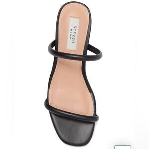 Steven New York Bala Minimalist Black Strappy Sandal Sz 7 Architectural Heel New