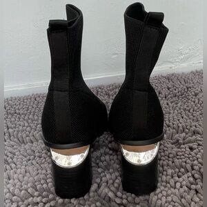 Elevate your footwear collection with these Steven New York ankle booties, showcasing a bold sculptural heel and a chic black design. The pointed toe and elastic side panels provide a seamless blend of style and comfort, perfect for a contemporary look.