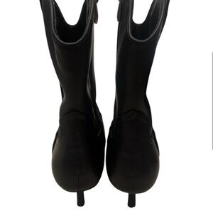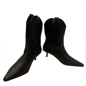 western boots, cowboy boots, kitten heel booties, pointed toe boots, black ankle boots, Steven New York, trendy fall boots, edgy minimalist style, size 7.5