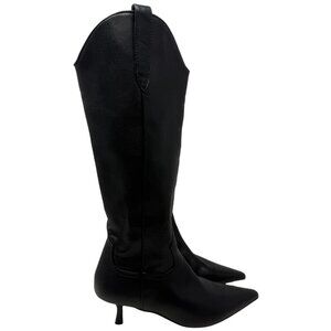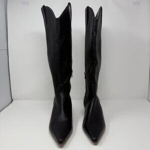 Steven New York Britt Knee High Western Boot Women's 8 Black Kitten Heel Cowboy