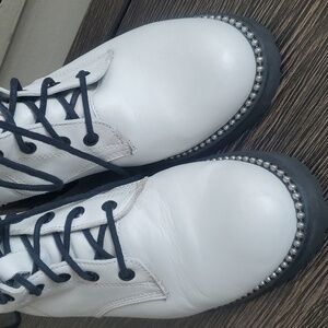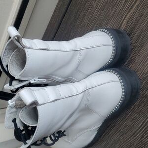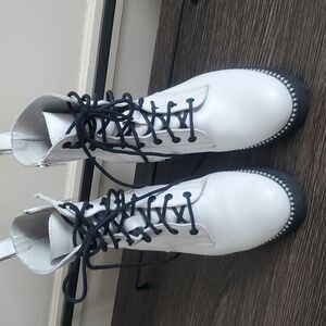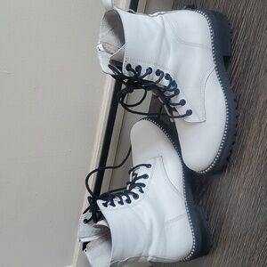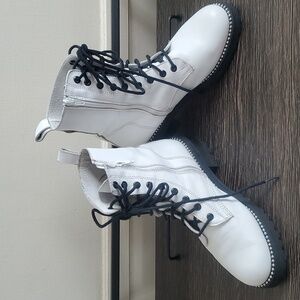 Steven New York Gardy White Leather lace-up Combat Boot Size 8.5