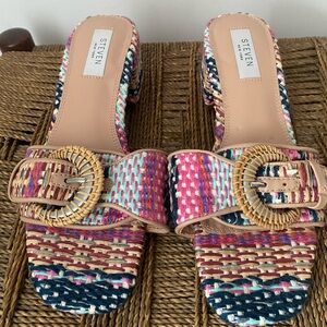 Steven New York Shoes Women’s 7.5 Raffia Blythe Sandal Multicolor Woven Heels