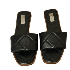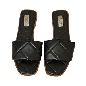 Steven New York by Steve Madden Black Holyn Quilted Flat Slide Sandals Size 7