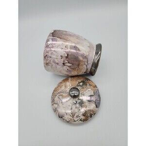 Steven Rhoades California Covered Dish Iridescent Swirled Pattern Vanity Dish. There is a little area on handle where paint has come off from use. See photos. Measurements are inside photos. Item is sold as is.