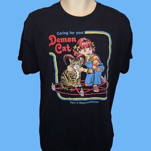 Steven Rhodes Caring For Your Demon Cat Black Graphic T-shirt Adult XL #119