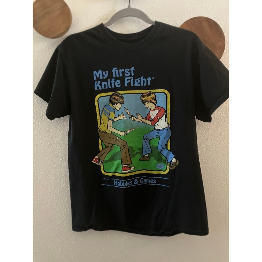 Tag is faded, shirt is not too faded, minor wash wear, looks a size small, black in color