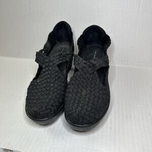 Steven Size 10 Slip On Round Toe Textile Wedge Heel Caspar Mary Jane Flat Black