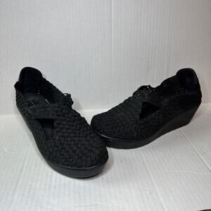 Steven Size Slip On Round Toe Textile Low Top Wedge Heel Sandals Black Casual