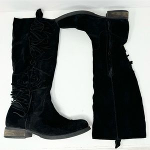 Steven Steve Madden Daltton Western Fringe Boots Leather Black Size 8.5