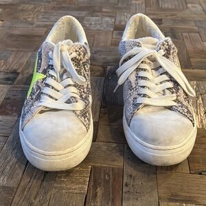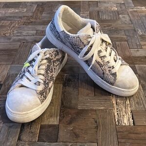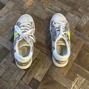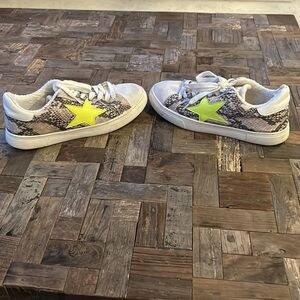 Steven by Steve Madden Reeves Star Sneakers. Snakeskin print with neon yellow star. Suede toe. True to size. Size 9M