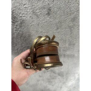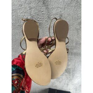 Steven Steve Madden Women’s 7 Box Gold Leather Thong Strappy Slingback Sandals