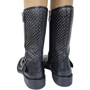 Steven Steve Madden Zain Black Leather Boots Silver Stud/Buckle/Zipper 7.5