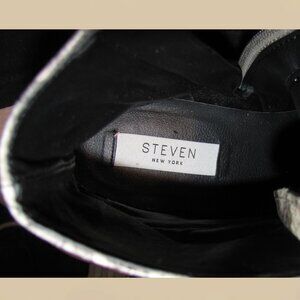 Steven brand Faux Python booties grey, black, and white. Size 7.5. Like new condition, worn only once. Features zip closure, three studded, buckled belts.