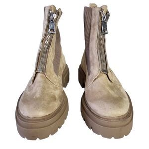 Steven by Steve Madden Aliyah Font Zip Tan Combat Boots Size 8.5