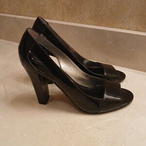 Steven by Steve Madden Black Patent Leather Peep Toe Heels Size 9 - Block Heel