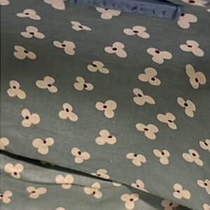 Colors- shades of blue, green, cream and silver metallic (muted not bright)