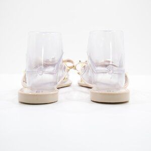 Steven by Steve Madden Deena Beige Plastic Gold Studded Flat Thong Sandals - 7