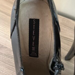 Steven by Steve Madden Glossy Black Tuxedo Platform Heels, size 5.5