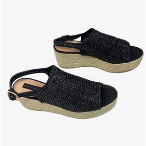 Steven by Steve Madden Jute Platform Open Toe Black Rose Gold Buckle size 11