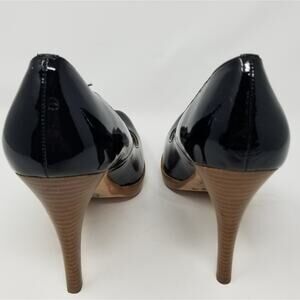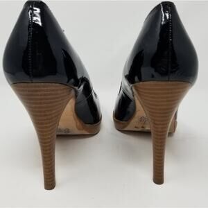 Black leather pumps Steven by Steve Madden. Very good condition. Black patent platform heels with 1/2 inch platform and 4.5 inch heel. Excellent pre-owned condition. Size 8.5 M.