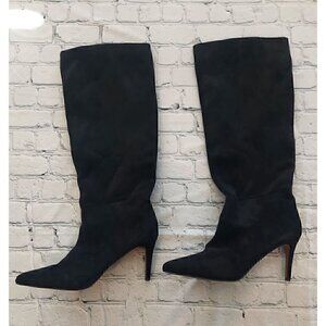 Lido Knee-High Boot in black faux suede with pointy-toe