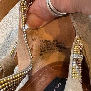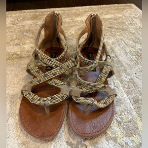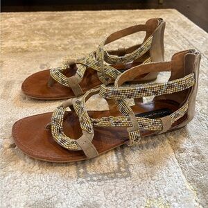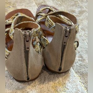 Rocker meets bohemian on these STEVEN BY STEVE MADDEN sandals, boasting soft suede and beaded straps. Back zip. Size 8.5. Very good condition.