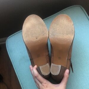 Good worn condition! Leather upper and stacked wood heel. Chelsea style elastic with buckle accent. Combines a good natural height, with comfort and stability!