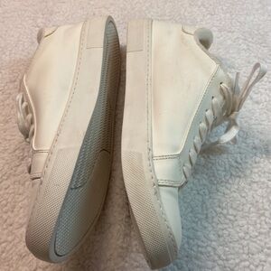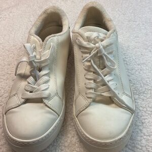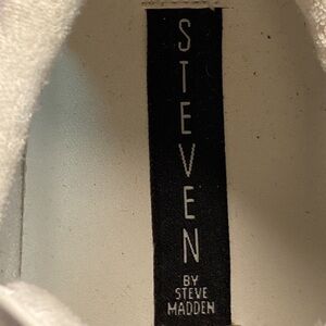 Steven by Steve Madden white sneakers. Good condition with dirt stains on the heel sock lining.