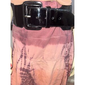 Keywords: Steven by Steve Madden, women's belt, black belt, wide waist belt, patent leather, poly/cotton elastic, size S/M, fashion accessory, China, pre-owned belt.