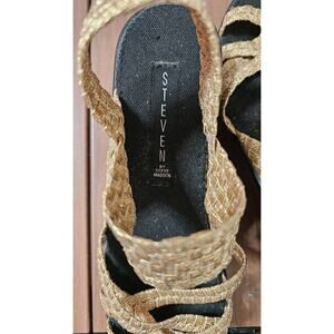 Steven by Steve Madden Women's Metallic Gold Stretch Strapped Sandal Heels 8