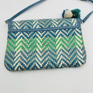 Steven by Steve Madden Woven Crossbody Bag Purse PVC Cotton Blues Gold NWT