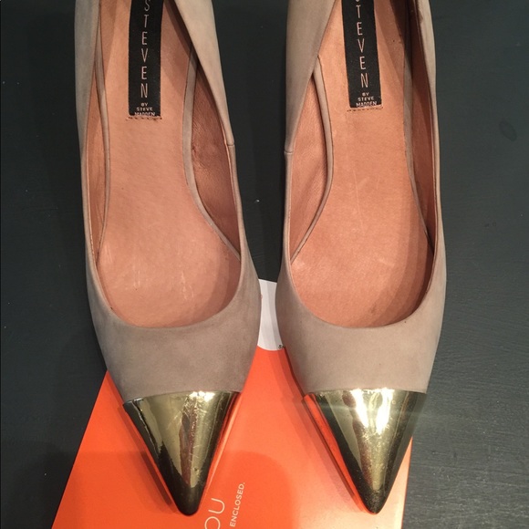 Steven by Steve Madden. 149.00 new and were on sale! Worn once, cap toe, suede beautiful Heels. I wear a 9 and they just kept slipping off.