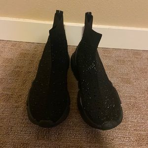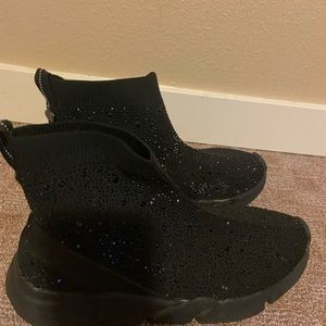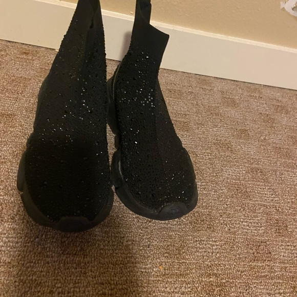 Used in good condition. Missing some of the rhinestones on both sides on shaft portion of shoes.