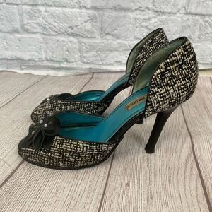 Steven madden black and white tweed open toe high heels sz 7.5