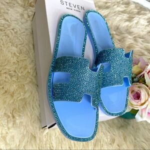 Sparkle and shine in the Andrian sandal featuring a jewel embellished strap for stylish flair. Sizing: True to size. - Open toe - Jewel embellished strap - Slip-on style - Contoured footbed - Grip sole