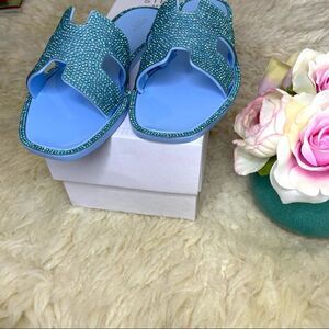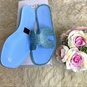Sparkle and shine in the Andrian sandal featuring a jewel embellished strap for stylish flair. Sizing: True to size. - Open toe - Jewel embellished strap - Slip-on style - Contoured footbed - Grip sole