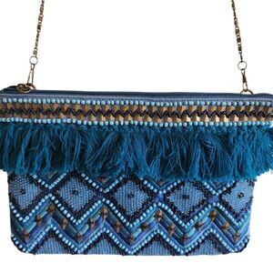Steven by Steve Madden Blue Boho Beaded Embroidered Crossbody Bag