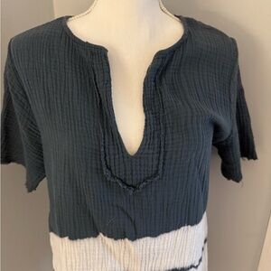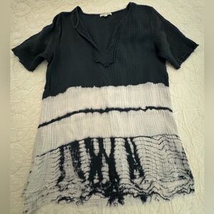 Stevie Hender short sleeve tie dye blouse. Navy/white. Boho. Size Medium