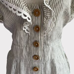 Stevie May Elm Pantsuit 100% Linen Wide Leg Jumpsuit Pin Stripe Eyelet Trim L