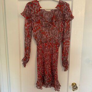 Stevie May Red Floral Long Sleeve Ruffle Dress - Size XS