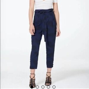 Stevie May XS Pants Cropped Navy Blue Paper Bag Waist Embroidered Dress Trouser