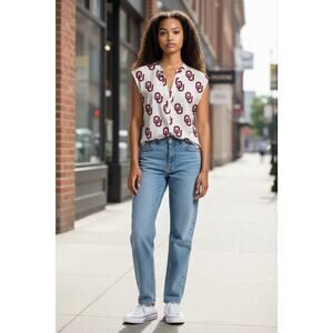 Show your team spirit in style with this feminine yet spirited button‑up top from Stewart Simmons featuring an all‑over Oklahoma Sooners “OU” print.