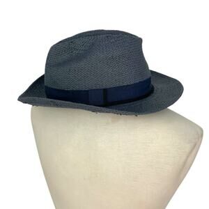 Stewart of Scotland Navy Blue Straw Fedora Size L/XL
