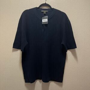 Steweart of Scotland Cashmere Blend Men's Knitted Short Sleeve Sweater Navy XL