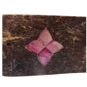 Soapstone incense burner. Brown with inlaid lotus flower symbol. Pre-owned in excellent condition. Approximately 10" long x 1.5" wide x 0.25" high.