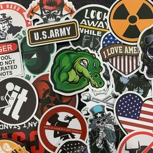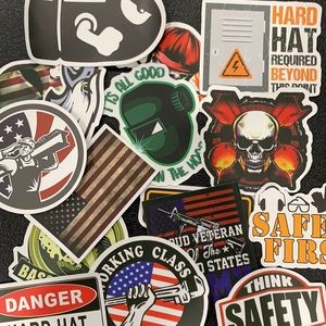 Warning: Random assortment may include military, skulls, patriotic, Safety, Biohazard, and language that is not pc.
