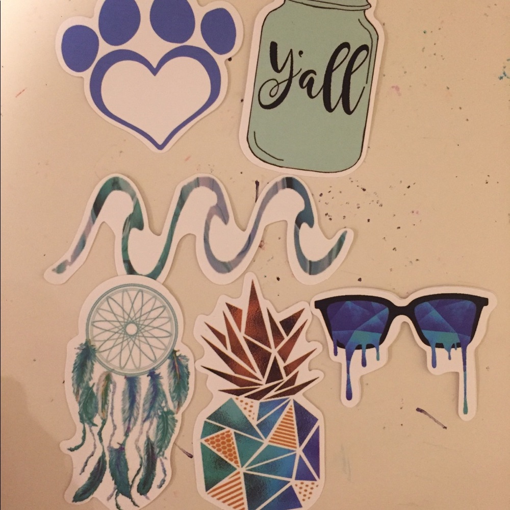 Includes: sunglasses, pineapple, wave, dream catcher, y’all, and paw with heart! You may mix and match to make your own personal sticker pack! Please be mindful that prices will vary based on your sticker pack! :)