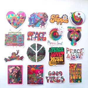Stickers Hippie Peace lot of 16 Water Bottle Laptop Luggage Crafts Trippy Music